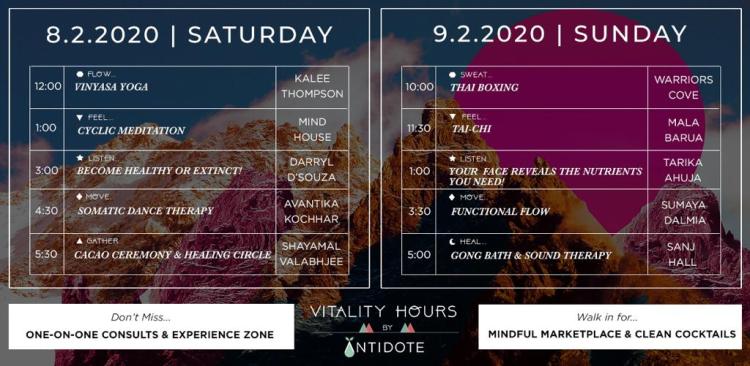 Vitality Hours is a 2 day event (8th & 9th Feb) and the venue is open to all, but to attend speaker sessions & workshops there is a single day cover charge of Rs.2000 or Rs.3000 for both days where you get full access to all sessions as detailed in the image below. Please call 9811000996 to register for the sessions..