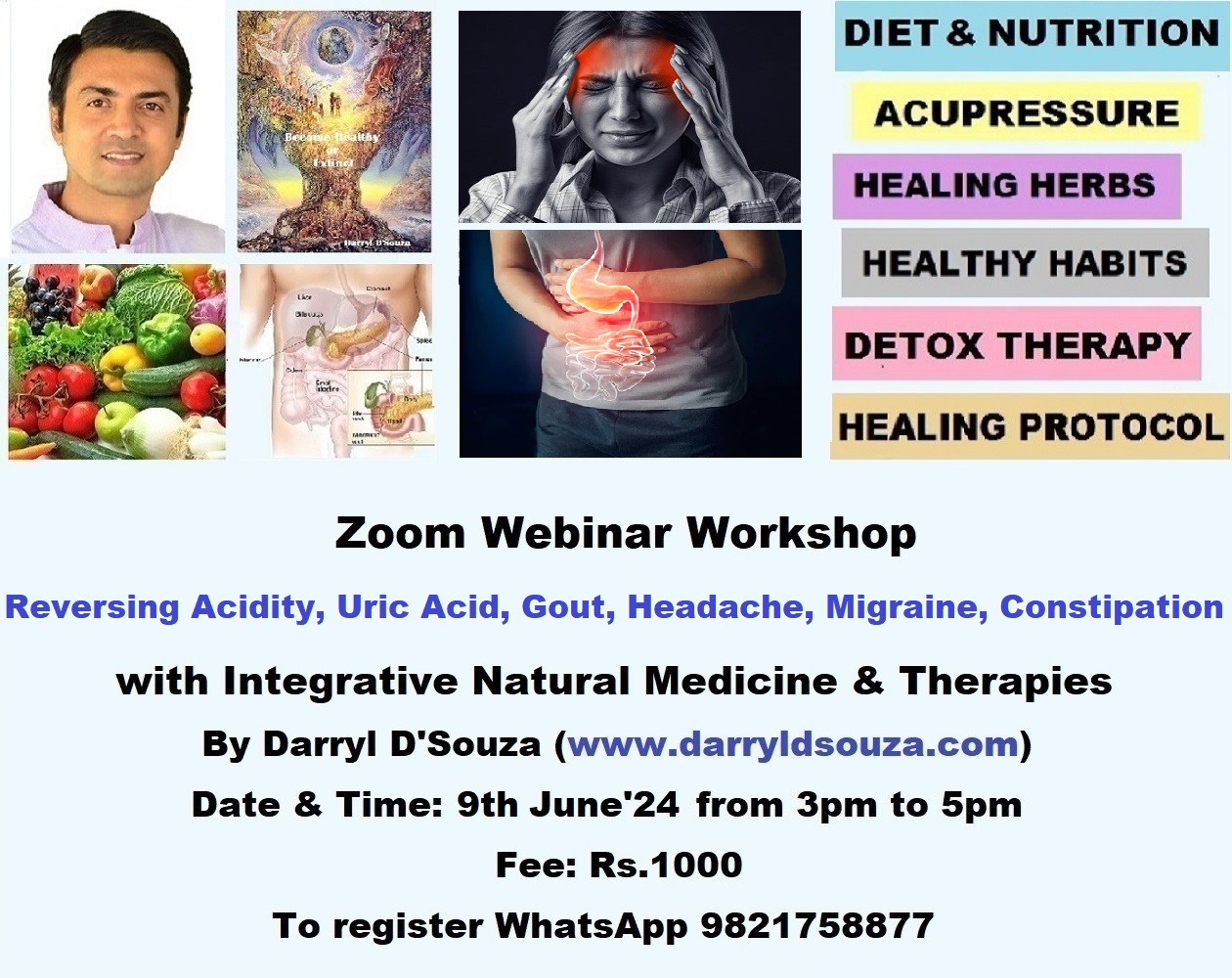 Zoom Webinar Workshop on Reversing Acidity, Uric Acid, Gout, Headache, Migraine, Constipation
